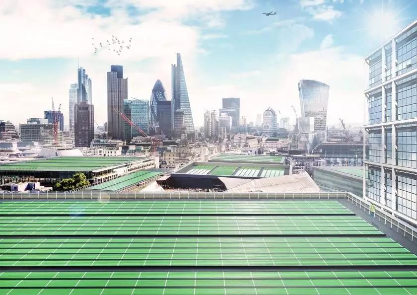 這些面板上覆蓋著微小的植物,能夠有效吸收二氧化碳,排出的氧氣量更是一般樹木的 100 倍。