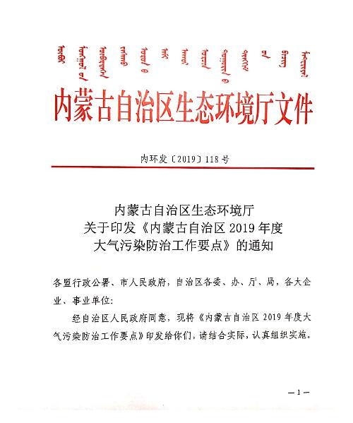 內(nèi)蒙古印發(fā)《內(nèi)蒙古自治區(qū)2019年度大氣污染防治工作要點》。文件提出,深化工業(yè)污染治理。全文如下: