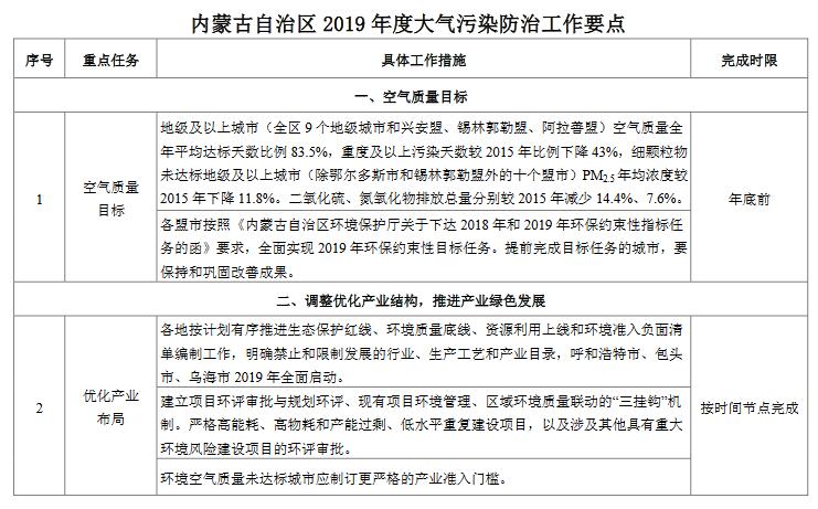 內(nèi)蒙古自治區(qū)2019年度大氣污染防治工作要點
