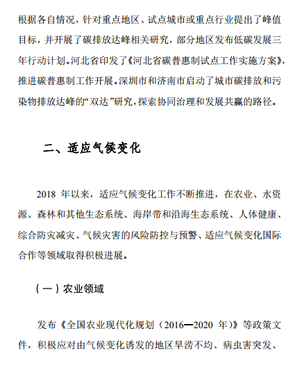 為幫助各方全面了解 2018 年以來中國在應(yīng)對氣候變化方面 的政策與行動及取得的成效,特編寫本報告。