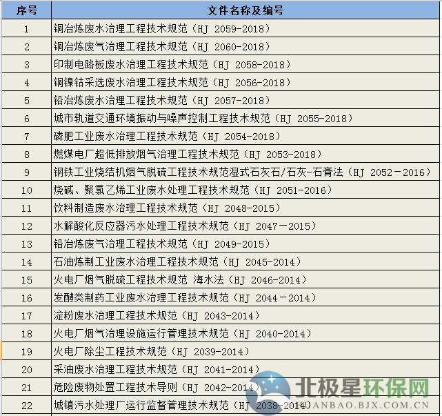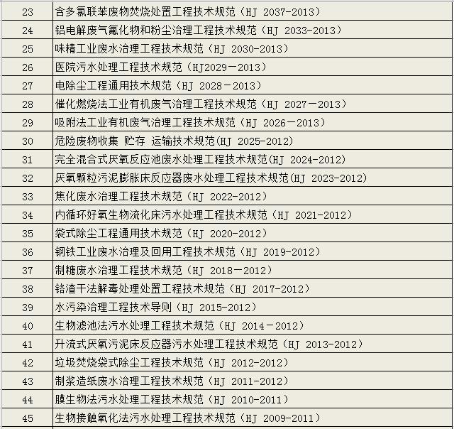 環(huán)境部已發(fā)布的環(huán)境保護(hù)工程技術(shù)規(guī)范匯總