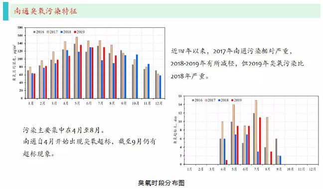 2016~2019年南通市臭氧濃度持續(xù)保持高位,但臭氧不是南通獨(dú)有,全國(guó)范圍內(nèi)京津冀、長(zhǎng)三角、珠三角等重點(diǎn)地區(qū),臭氧年均濃度均處于較高水平。光照越強(qiáng)、溫度越高,VOCs次生反應(yīng)概率越大,臭氧值越容易攀升。