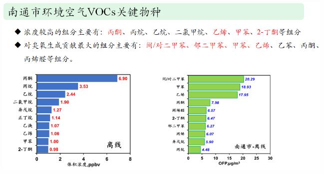 南通市目前的臭氧污染屬于VOCs主導(dǎo)型,現(xiàn)階段應(yīng)以控制VOCs排放為主要手段。通過(guò)化合物相關(guān)性及不同化合物間比值變化分析,初步判斷噴漆、涂裝、化工等行業(yè)使用的溶劑中排的芳香烴等VOCs活性物質(zhì)與臭氧污染有較大相關(guān)性,交通源和城市生活面源對(duì)城區(qū)臭氧污染也有一定貢獻(xiàn)。