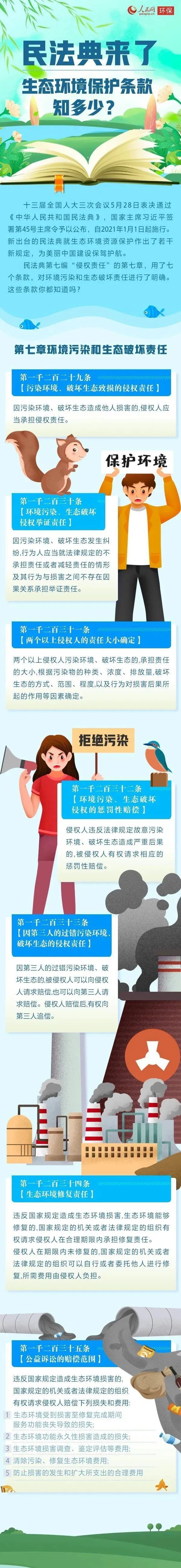 十三屆全國人大三次會議5月28日表決通過《中華人民共和國民法典》,國家主席習(xí)近平簽署第45號主席令予以公布,自2021年1月1日起施行。新出臺的民法典就生態(tài)環(huán)境資源保護(hù)作出了若干新規(guī)定,為美麗中國建設(shè)保駕護(hù)航。