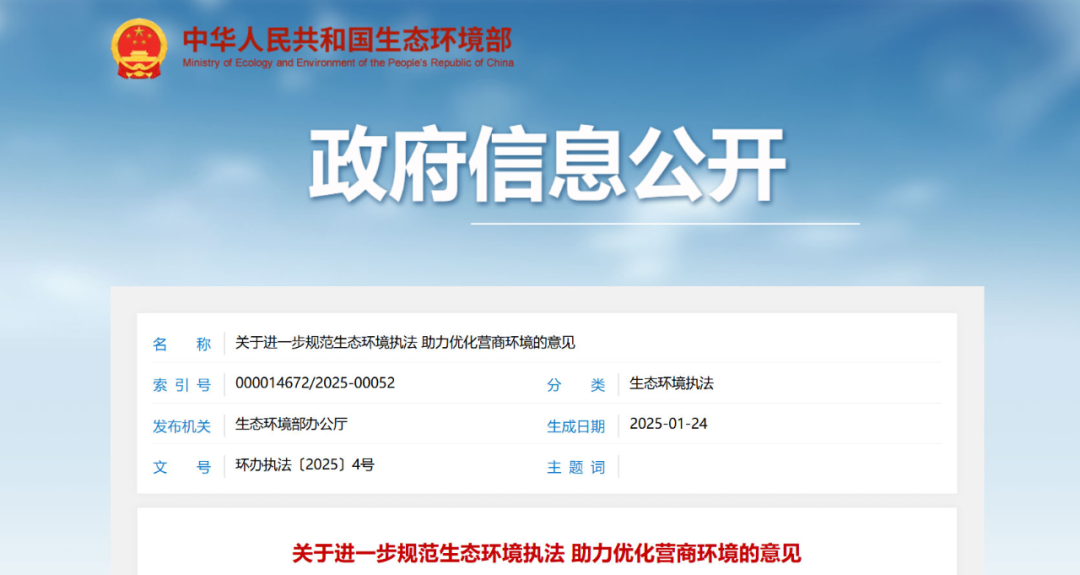 2、關(guān)于進(jìn)一步規(guī)范生態(tài)環(huán)境執(zhí)法 助力優(yōu)化營商環(huán)境的意見,生態(tài)環(huán)境部,2025-02-24