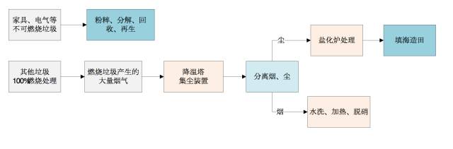 技術(shù):擁有先進(jìn)的廢氣凈化處理技術(shù),垃圾處理流程如下圖: