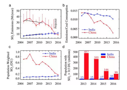 2017年11月9日,擁有《自然》雜志的自然科研旗下期刊《科學(xué)報(bào)告》發(fā)表了一篇論文,題為“印度正在取代中國(guó),成為世界上最大的人為因素二氧化硫排放國(guó)”。論文顯示,2007年是中國(guó)二氧化硫排放量的頂峰,此后連年下降,至今年減少了75%。印度則恰好相反,連年遞增,終于在2016年超越了中國(guó)。