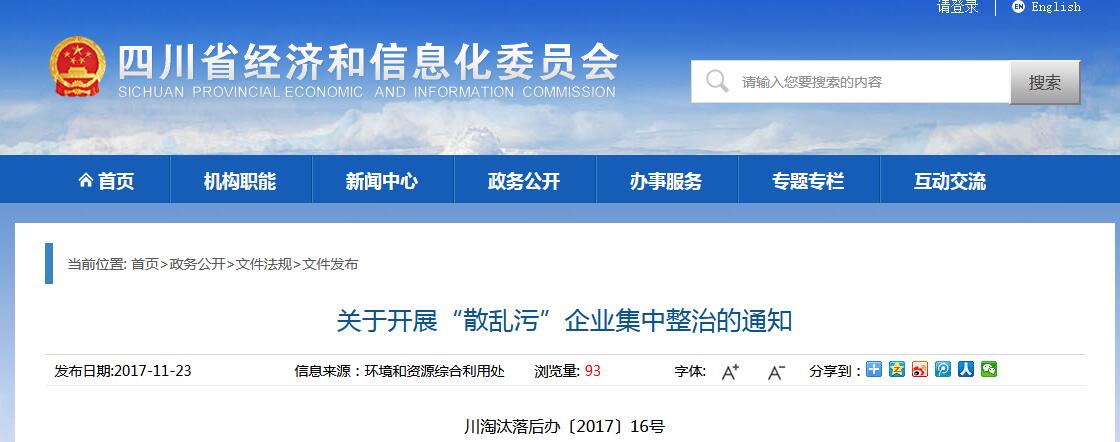 日前,四川經(jīng)信委印發(fā)關(guān)于開(kāi)展“散亂污”企業(yè)集中整治的通知。全文如下:
