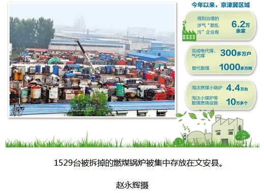 11月21日,京津冀及周邊地區(qū)“散亂污”企業(yè)治理暨秋冬季大氣污染綜合治理攻堅階段總結(jié)現(xiàn)場會在文安舉行。環(huán)保部部長李干杰通報,今年以來,京津冀區(qū)域6.2萬余家涉氣“散亂污”企業(yè)得到治理;完成電代煤、氣代煤300多萬戶,替代散煤1000多萬噸;淘汰燃煤小鍋爐4.4萬臺,淘汰小煤爐等散煤燃燒設(shè)施10萬多個……