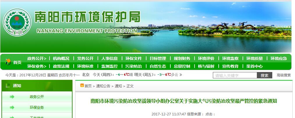 南陽(yáng)市環(huán)境污染防治攻堅(jiān)戰(zhàn)領(lǐng)導(dǎo)小組辦公室關(guān)于實(shí)施大氣污染防治攻堅(jiān)最嚴(yán)管控的緊急通知