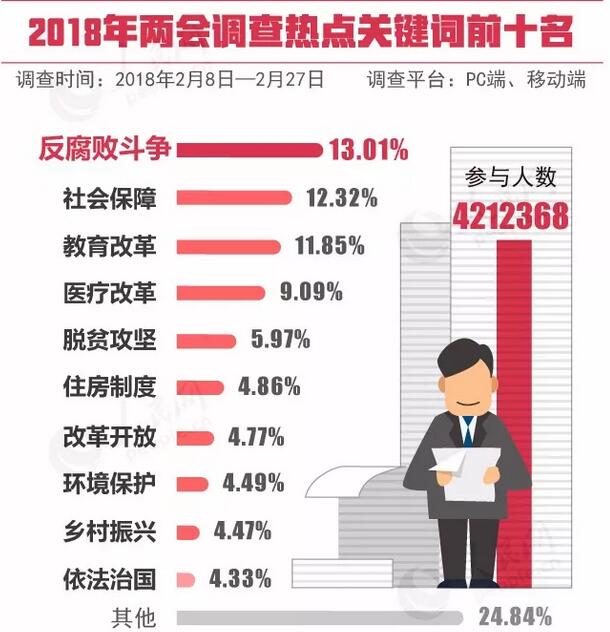 2018年3月,全國兩會將在北京召開,網(wǎng)民最關(guān)心什么?有哪些期待?而隨著環(huán)保政策的頻繁出臺,人民對碧海藍天的渴望更加強烈,環(huán)境保護問題也愈發(fā)引起人民的關(guān)注。人民網(wǎng)推出的兩會熱點調(diào)查中,“環(huán)境保護”進入前十名榜單,成為備受關(guān)注的熱點問題,而且其于2014-2018年五次上榜。