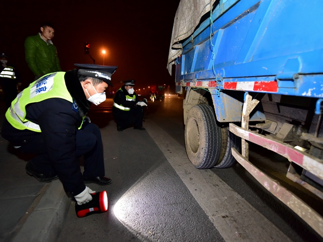 2016年11月17日晚,環(huán)境保護(hù)部聯(lián)合北京市環(huán)保局在北京各城區(qū)開(kāi)展機(jī)動(dòng)車(chē)污染防治檢查。圖為環(huán)保執(zhí)法人員正在夜查高污染車(chē)。攝影/章軻