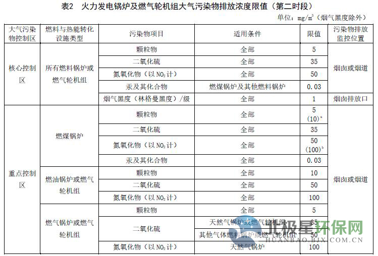 2020年1月1日起,所有火力發(fā)電鍋爐或燃?xì)廨啓C(jī)組按所在控制區(qū)執(zhí)行表2中的排放濃度限值。