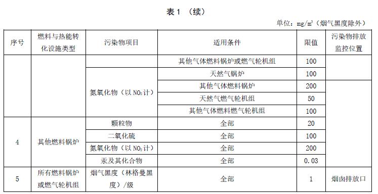 4.2.22016年9月20日起至本標(biāo)準(zhǔn)實(shí)施之日前環(huán)境影響評(píng)價(jià)文件通過(guò)審批的燃煤鍋爐建設(shè)項(xiàng)目,2017年1月1日起至本標(biāo)準(zhǔn)實(shí)施之日前環(huán)境影響評(píng)價(jià)文件通過(guò)審批的燃油、燃?xì)忮仩t或燃?xì)廨啓C(jī)組及其他燃料鍋爐建設(shè)項(xiàng)目,以及新建火力發(fā)電鍋爐或燃?xì)廨啓C(jī)組項(xiàng)目,自本標(biāo)準(zhǔn)實(shí)施之日起按所在控制區(qū)執(zhí)行表2中的排放濃度限值。