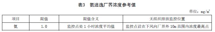 采用氨法脫硫或使用尿素、液氨或氨水作為還原劑脫硝的企業(yè),無(wú)組織排放監(jiān)控點(diǎn)濃度限值應(yīng)符合表3規(guī)定。