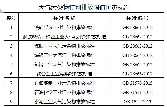 鋼鐵、石化、水泥行業(yè)大氣污染物排放標(biāo)準(zhǔn)中特別排放限值要求