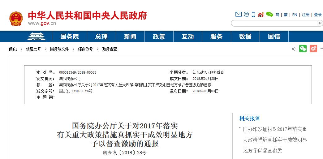 2018年對上述市、縣(市、區(qū))、功能區(qū)在國務(wù)院大督查實(shí)地督查中予以“免督查”。(國務(wù)院辦公廳組織實(shí)施)
