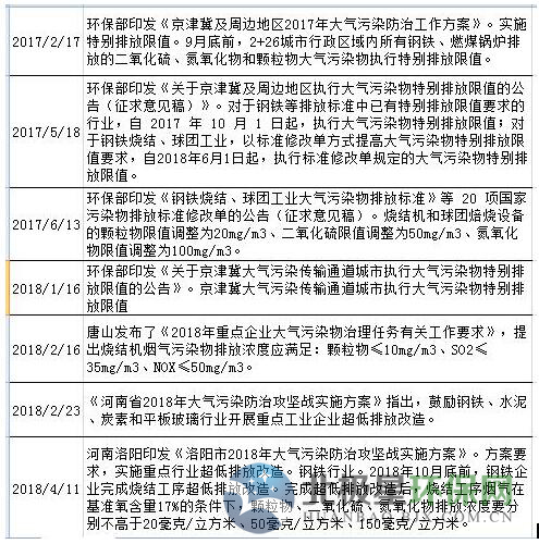 鋼鐵超低排放政策匯總