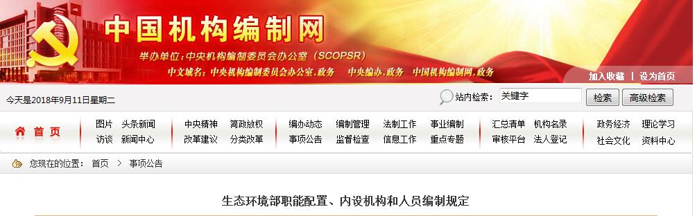 生態(tài)環(huán)境部職能配置、內(nèi)設機構(gòu)和人員編制規(guī)定