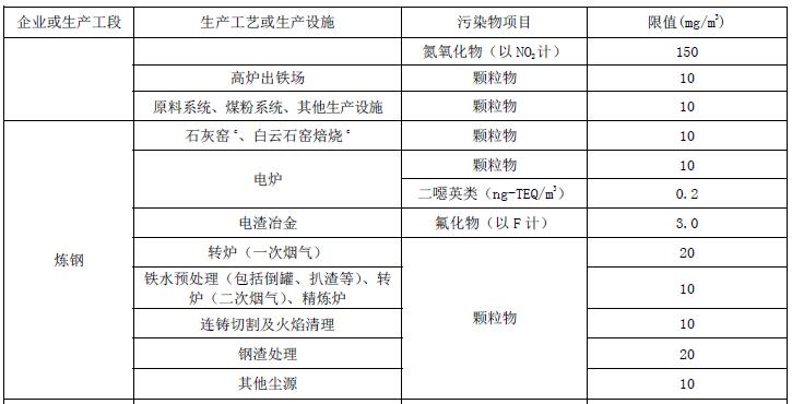 4.1.3 國務院生態(tài)環(huán)境主管部門或省級人民政府明確規(guī)定執(zhí)行大氣污染物特別排放限值的地域范圍和時間的,該地域范圍內(nèi)的鋼鐵工業(yè)企業(yè)除應執(zhí)行本標準外,還應按規(guī)定達到國家標準中特別排放限值的要求。