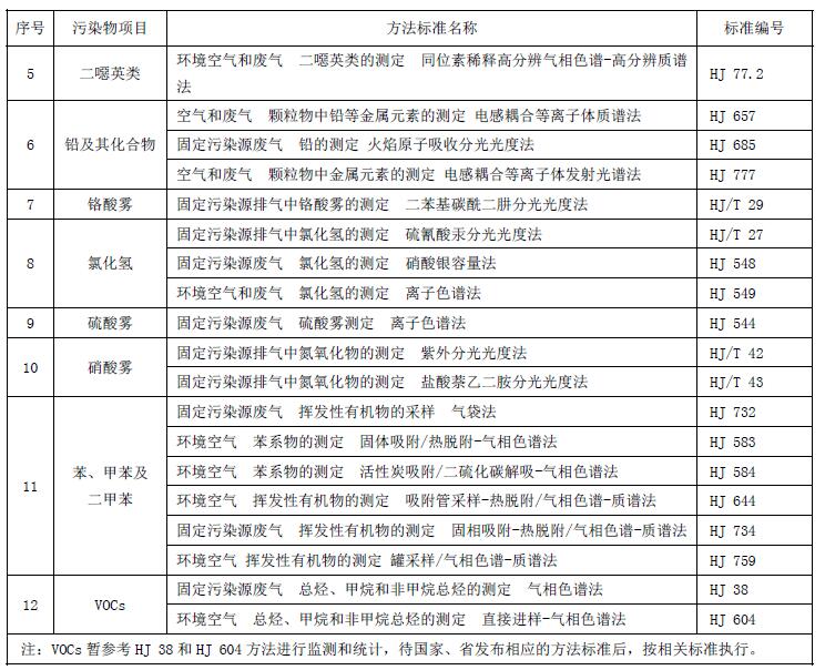 5.5 對大氣污染物排放濃度的測定采用表3 所列的方法標準。本標準發(fā)布實施后,有新發(fā)布的國家環(huán)境監(jiān)測分析方法標準,其方法適用范圍相同的,也適用于本排放標準對應污染物的測定。