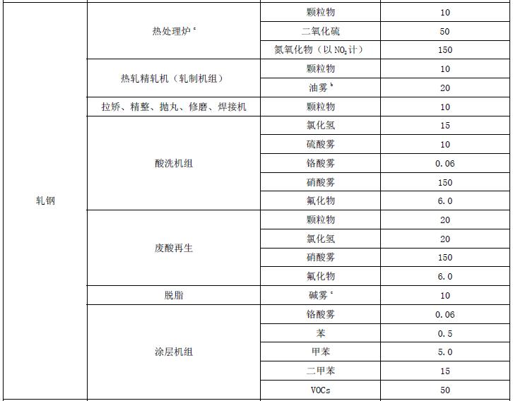 京津冀大氣污染傳輸通道城市內(nèi)的現(xiàn)有企業(yè)自2020 年11月1日起,其他非傳輸通道城市內(nèi)的現(xiàn)有企業(yè)自2022 年1月1日起,執(zhí)行表1的排放濃度限值?,F(xiàn)有企業(yè)在執(zhí)行表1的排放濃度限值前,執(zhí)行現(xiàn)行DB37/2376-2013、DB37/990-2013 的有關要求;其中,DB37/2376-2013重點控制區(qū)內(nèi)轉爐(一次煙氣)、鋼渣處理以及廢酸再生的顆粒物排放濃度限值統(tǒng)一執(zhí)行20mg/m3,重點控制區(qū)內(nèi)煉鐵熱風爐、軋鋼熱處理爐的氮氧化物排放濃度限值統(tǒng)一執(zhí)行150mg/m3。