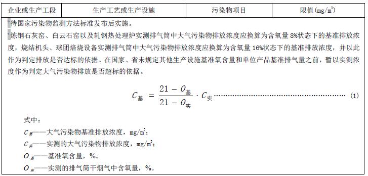 自本標準實施之日起,新建鋼鐵企業(yè)執(zhí)行表1的排放濃度限值。