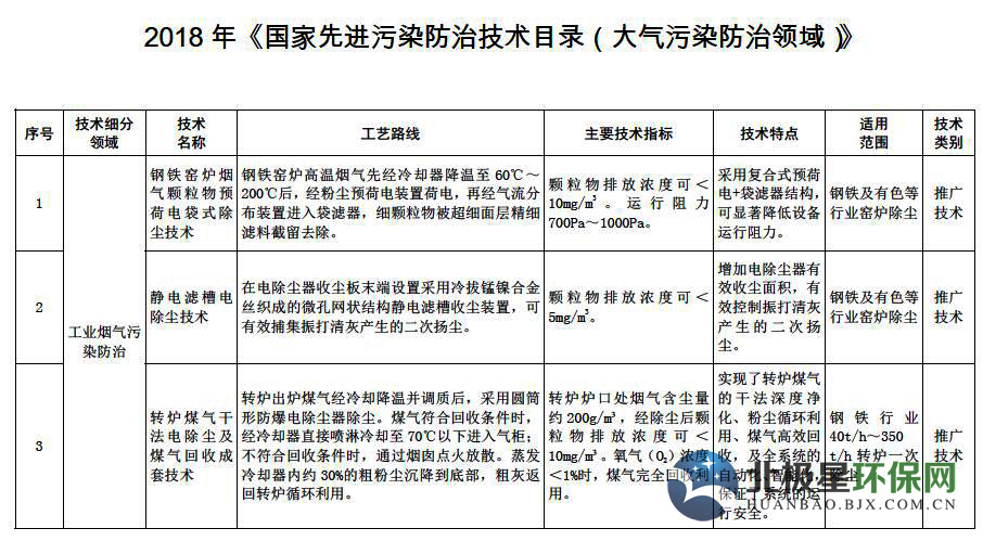 關(guān)于發(fā)布2018年《國家先進(jìn)污染防治技術(shù)目錄(大氣污染防治領(lǐng)域)》的公告
