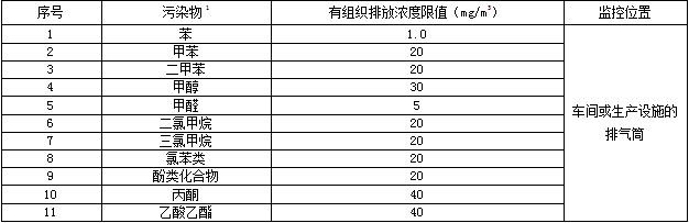 表1 揮發(fā)性有機(jī)物有組織排放濃度限值