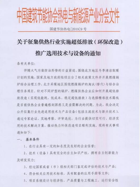 關(guān)于征集供熱行業(yè)實施超低排放(環(huán)保改造)推廣選用技術(shù)與設(shè)備的通知