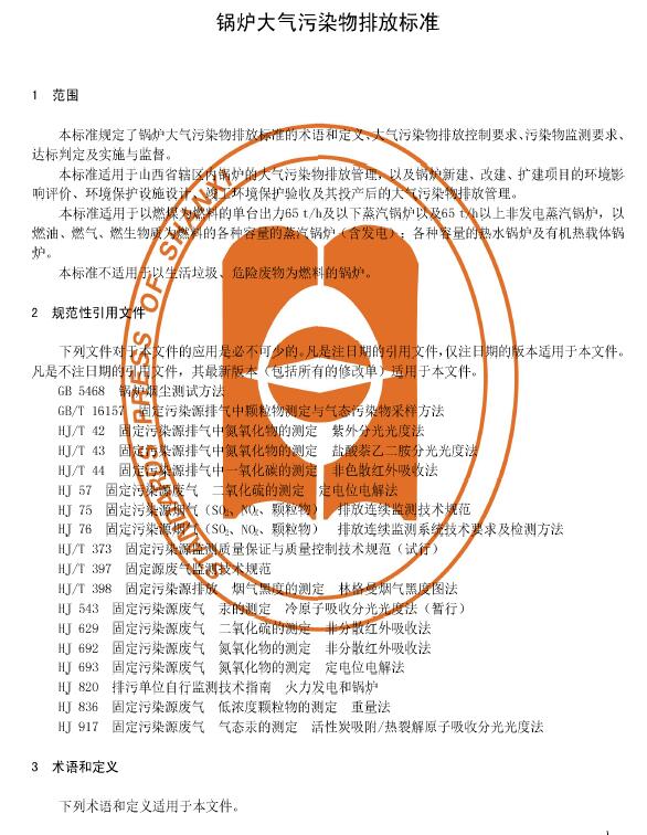 山西:《鍋爐大氣污染物排放標(biāo)準(zhǔn)》(DB14/1929-2019)