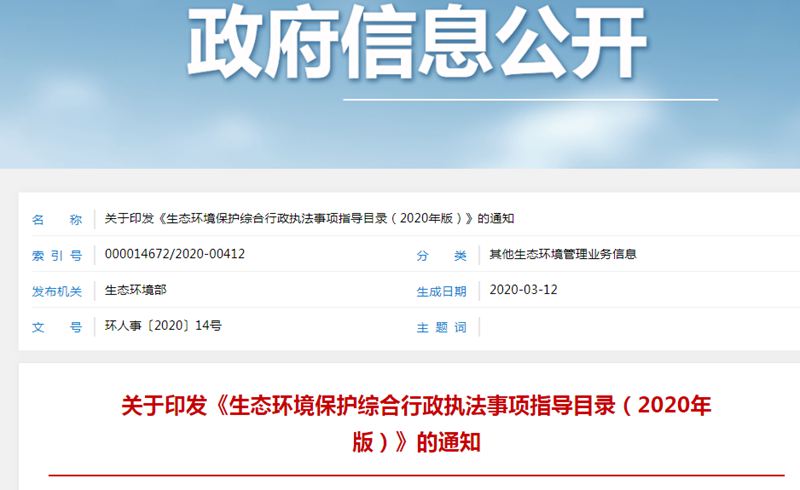重磅!生態(tài)環(huán)境保護(hù)綜合行政執(zhí)法事項(xiàng)指導(dǎo)目錄(2020年版)