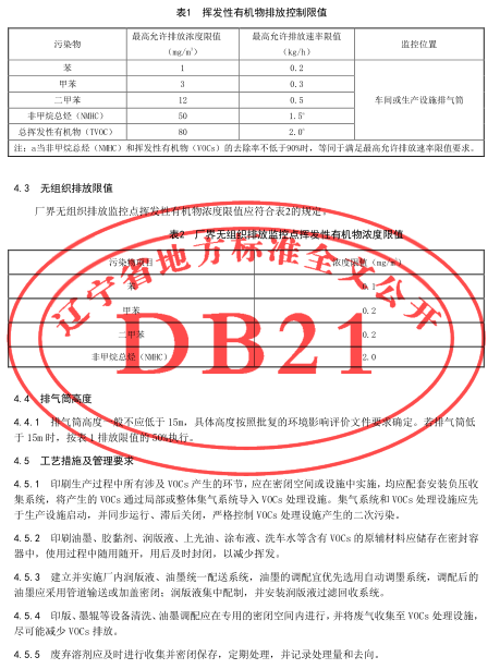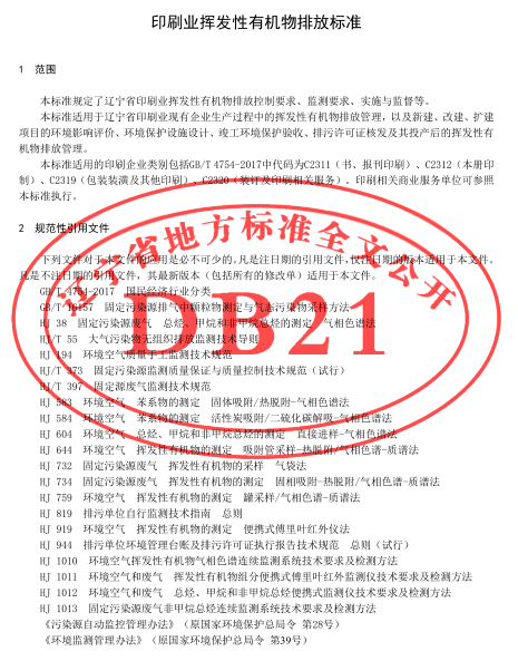 遼寧:印刷業(yè)揮發(fā)性有機(jī)物排放標(biāo)準(zhǔn)(DB21/3161-2019)