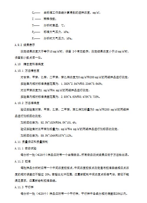 3.11苯系物benzenehomologues苯系物是指分子式中只含有一個(gè)苯環(huán)的芳烴統(tǒng)稱(chēng)。本標(biāo)準(zhǔn)中的苯系物僅包括苯、甲苯、二甲苯(間、對(duì)二甲苯和鄰二甲苯)、三甲苯(1,2,3-三甲苯、1,2,4-三甲苯和1,3,5-三甲苯)、乙苯及苯乙烯合計(jì)。