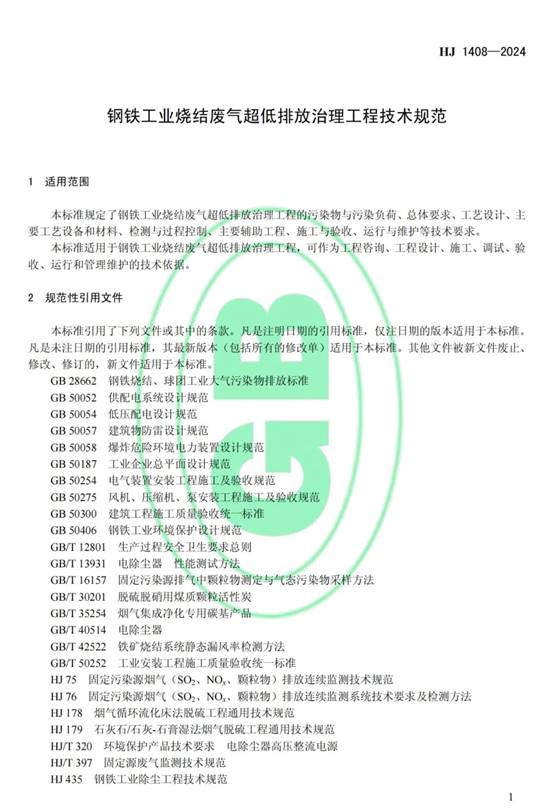 鋼鐵工業(yè)燒結(jié)廢氣超低排放治理工程技術(shù)規(guī)范(HJ 1408—2024).pdf