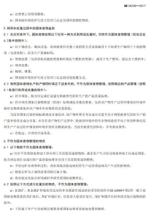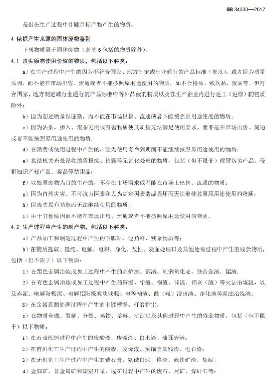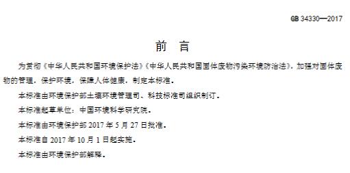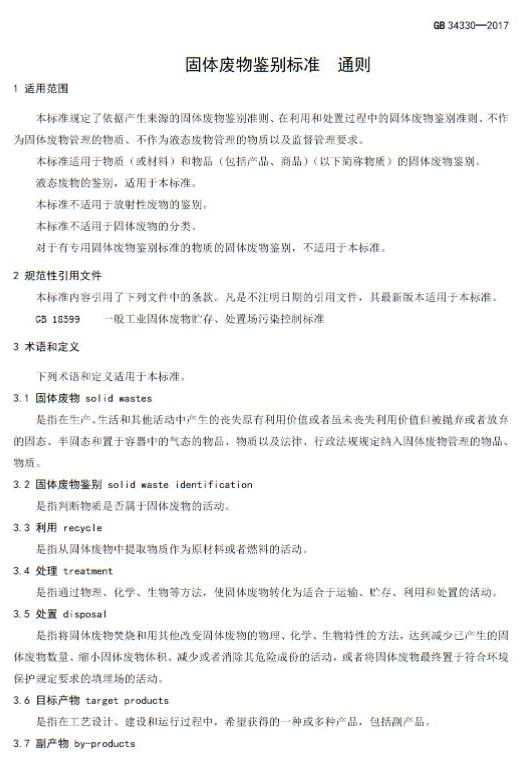 為貫徹《中華人民共和國環(huán)境保護法》《中華人民共和國固體廢物污染環(huán)境防治法》,加強對固體廢物的管理,保護環(huán)境,保障人體健康,環(huán)境保護部土壤環(huán)境管理司、科技標準司組織制訂了《固體廢物鑒別標準 通則(GB 34330-2017 )》。標準起草單位:中國環(huán)境科學研究院,由環(huán)境保護部2017年5月27日批準。自2017年10月1日起實施,由環(huán)境保護部解釋。 具體內(nèi)容如下: