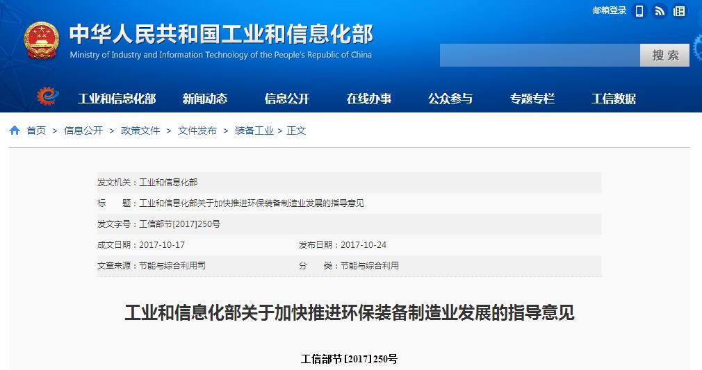 工業(yè)和信息化部關(guān)于加快推進(jìn)環(huán)保裝備制造業(yè)發(fā)展的指導(dǎo)意見