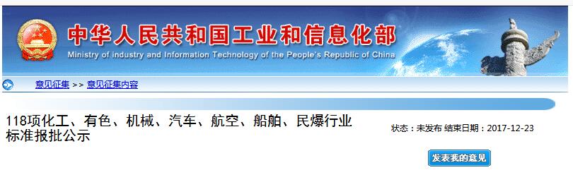 118項化工、有色、機(jī)械、汽車、航空、船舶、民爆行業(yè)標(biāo)準(zhǔn)報批公示