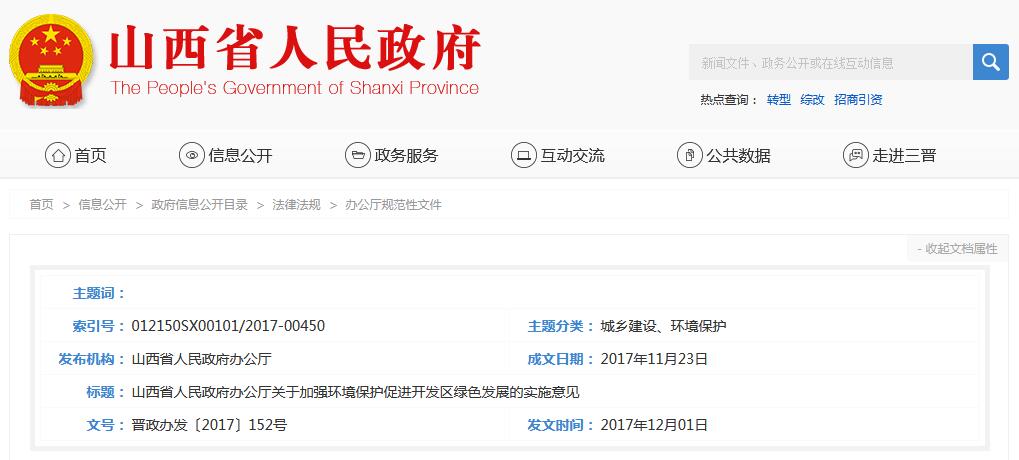 山西省政府印發(fā)關(guān)于加強(qiáng)環(huán)境保護(hù)促進(jìn)開(kāi)發(fā)區(qū)綠色發(fā)展的實(shí)施意見(jiàn)。全文如下: